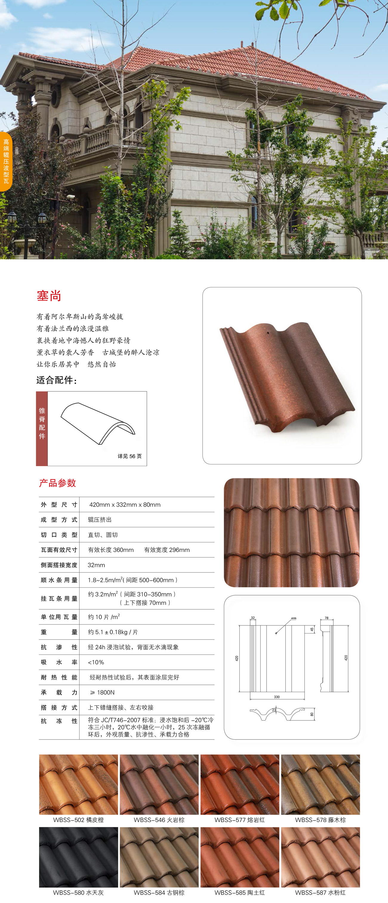 當前位置:網站首頁>>產品介紹>>瓦德彩色混凝土瓦>>瓦園系列波瓦